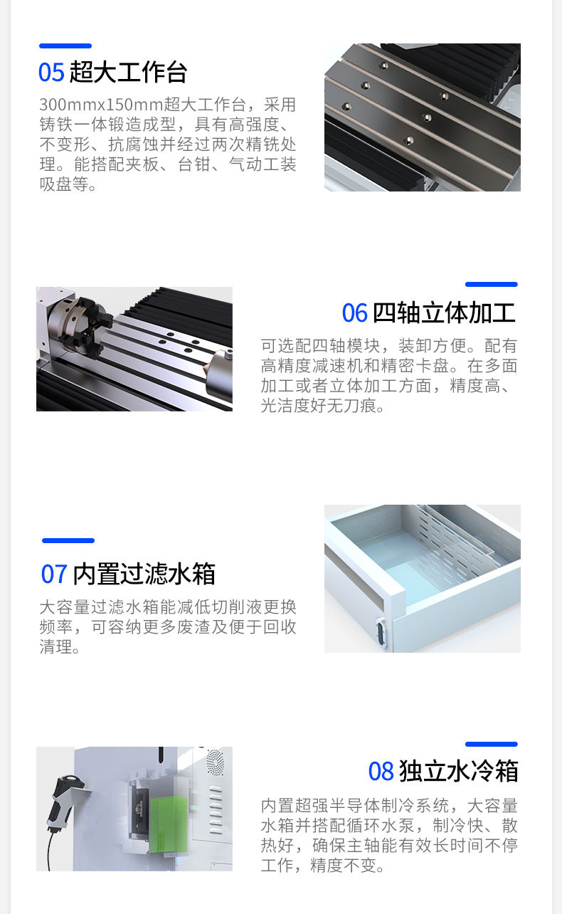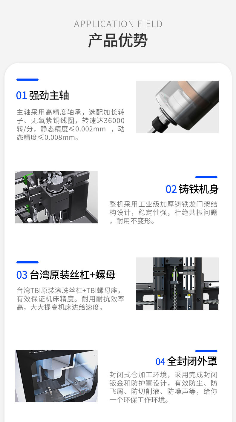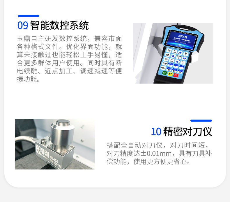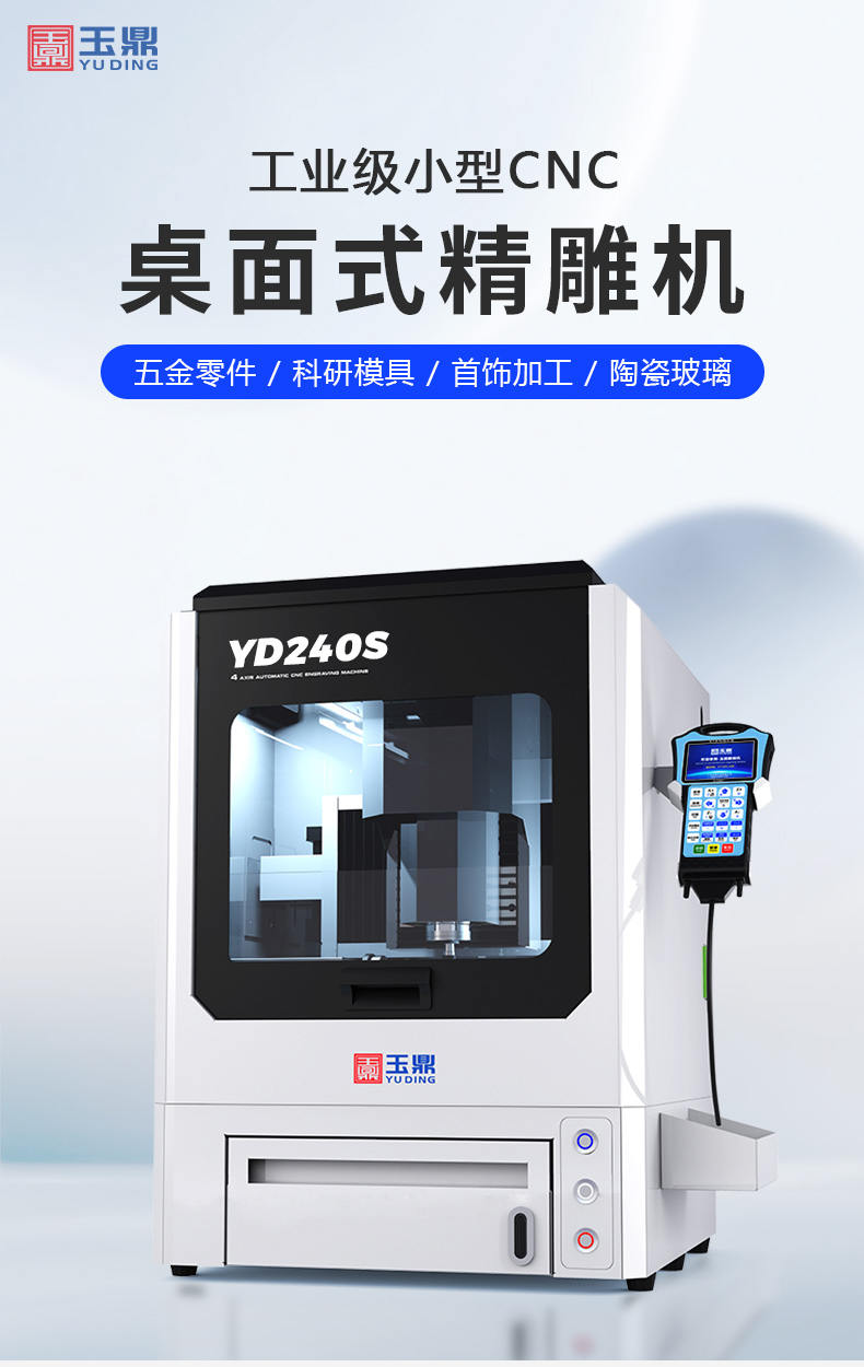 玉鼎YD240是一款微型桌面式CNC數(shù)控雕銑機(jī)(數(shù)控雕銑機(jī)),球墨鑄鐵龍門式結(jié)構(gòu),配強(qiáng)悍大轉(zhuǎn)速主軸、臺(tái)灣TBI滾珠絲杠、雷賽驅(qū)動(dòng)(可選裝)。可應(yīng)用各類材料軟金屬類:銅、鋁、金、銀類金屬,非金屬材料類:塑膠、陶瓷、玻璃、氧化鋯陶瓷、玉石、木料、塑膠、尼龍材料、亞克力板等等。主要用于學(xué)校課程培訓(xùn)、科研院所制作實(shí)體模型加工件、機(jī)加工廠家小機(jī)械零件加工、學(xué)校創(chuàng)客等等。具有加工精度高、剛性強(qiáng)、性能穩(wěn)定、操作簡易,可以配加第4軸,實(shí)現(xiàn)4軸聯(lián)動(dòng)。